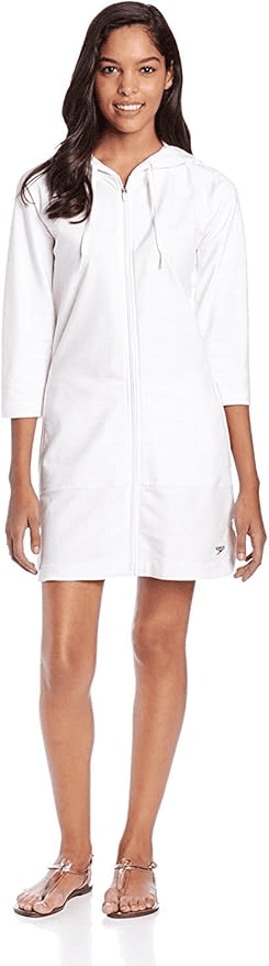 If you would like one thing tremendous straightforward to slide on and off, a full-zip cover-up is the best way to go. This one has a sporty really feel, and I like that it doesn’t cling when moist.