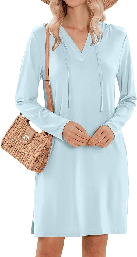If I’m spending lots of time within the solar, I choose a cover-up with a hood that I can pull on to guard the again of my neck. This one has built-in solar safety, plus lengthy sleeves that assist block UV rays with out feeling too scorching.