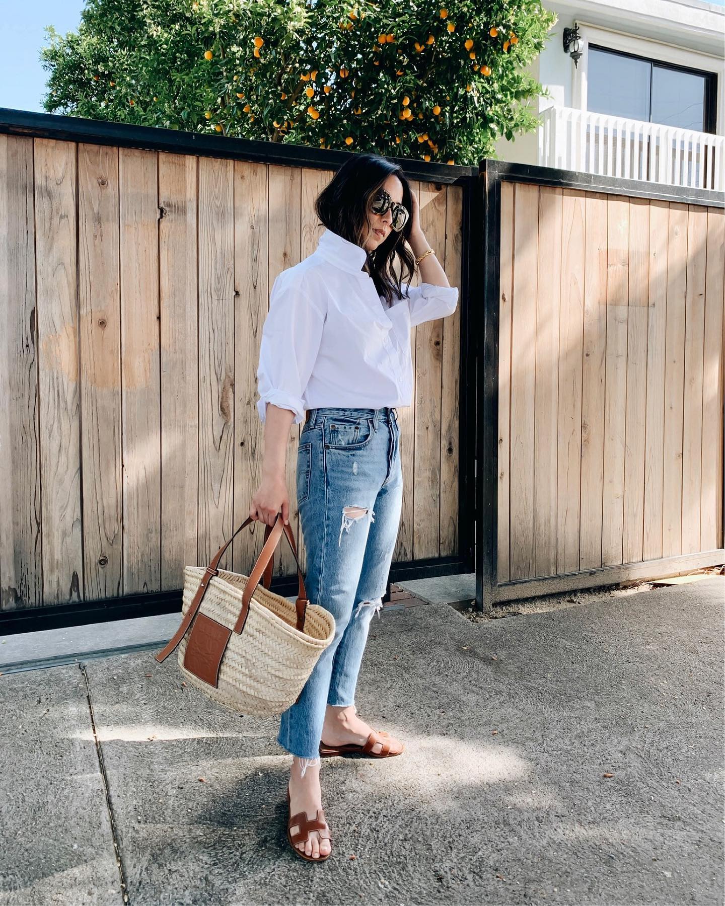 Add a pair of mules in a cognac brown colour or if it’s nonetheless heat the place you’re go for a slide-on sandal as a substitute. For a extra fashionable look, you may even go for a distressed pair of denim – consider some refined distressing on the hems to nonetheless keep that stylish look.