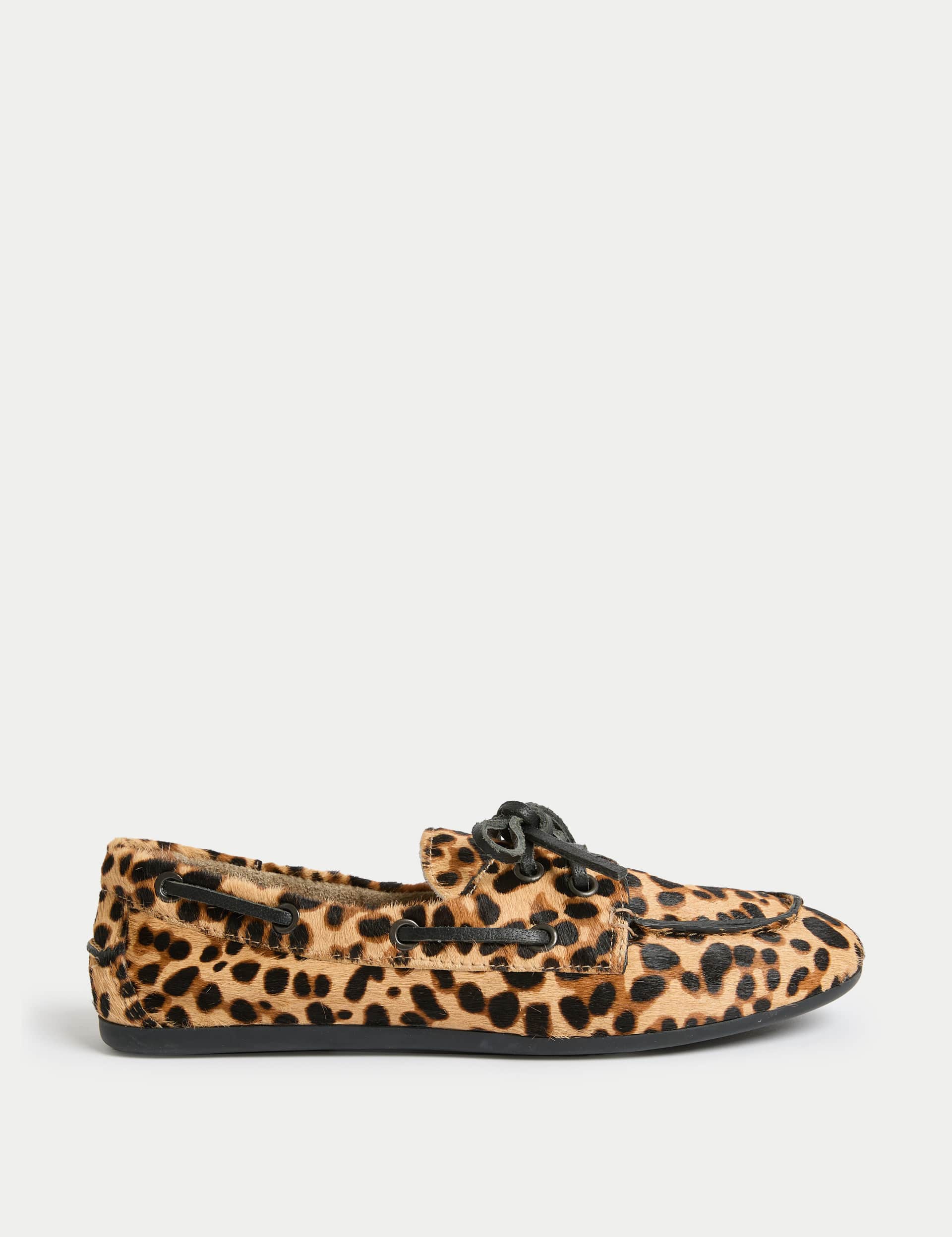 M&S Assortment Leather-based Leopard Print Flat Boat Sneakers £55