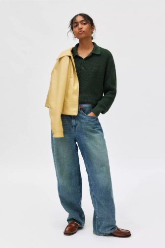 Cozy, outsized knits are a key merchandise wanted to realize the grandpacore aesthetic, particularly ones with earthy hues like darkish inexperienced. This outsized polo sweater includes a traditional collar element with buttons and cuffed sleeves that make it appear like it got here out of your grandpa’s wardrobe, with a nostalgic meets traditional look.