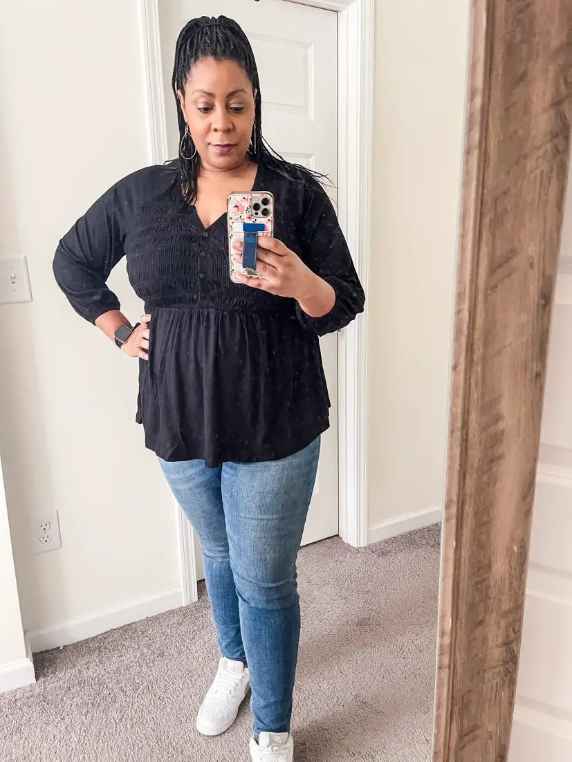 Stepping out of my consolation zone right here and sharing a vogue put up – a Spring outfit strive on.  In case you missed it, I’ve been on a weight reduction journey and I’ve been placing in work within the gymnasium.  I’ve obtained a really lengthy technique to go however I’m beginning to really feel good in my pores and skin.  For some time now I’ve wished to share outfit concepts from my measurement perspective.