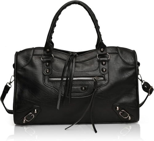 This bag options silver rivets and zippers just like these discovered on a moto jacket (and just like a sure well-known designer purse…), giving it an edgy vibe. Strive pairing it with the moto jacket above for a cool, coordinated look.