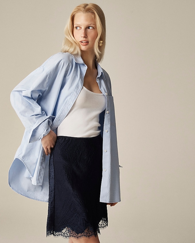 I used to rely closely on my lengthy slip skirts for any time I did not know what to put on to work—they had been the epitome of a wardrobe staple. Now, I by no means seize for them. As a substitute, I am frequenting shorter, extra 2025 variations that hit across the knee and have a line of stylish lace on the backside hem. J.Crew’s skirt is my favourite, however with many manufacturers hopping on board, I am slowly however certainly constructing a set.